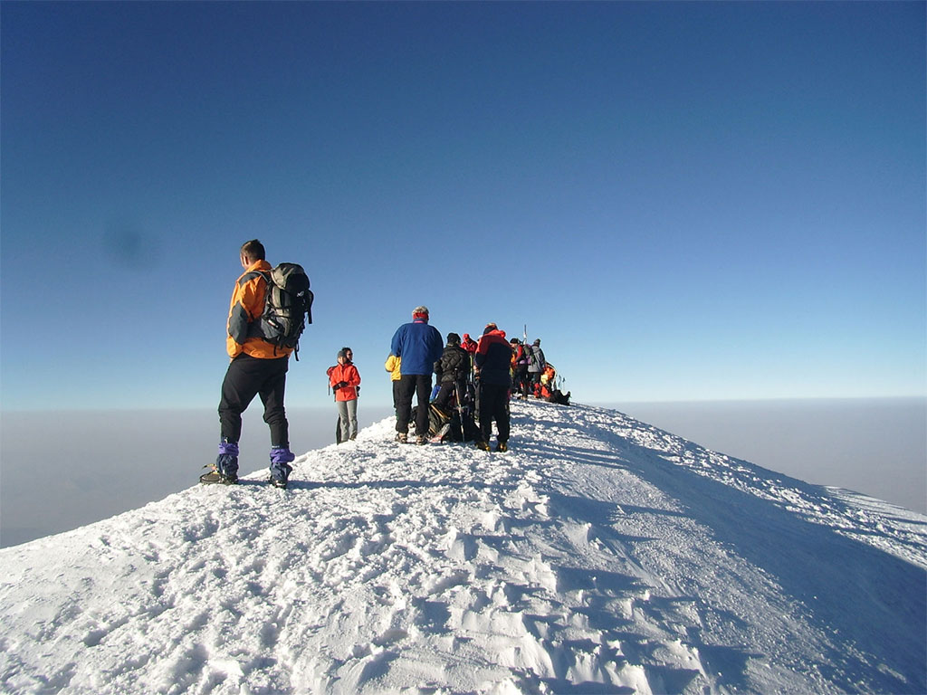 Climb to the summit (5.165m) While is not technically difficult climb it does require stamina. Our ascension starts early in the morning. About at 4500 m glaciers and perennial snows are present, thus the most part of the ascent is done with equipment necessary for ice climbing. Anybody fit for high mountain walking or acquainted with ice climbing. Return to the base Camp I. Overnight at camp, with all meals. Ascent = 1065mm – Descent =2265 m. (BLD)